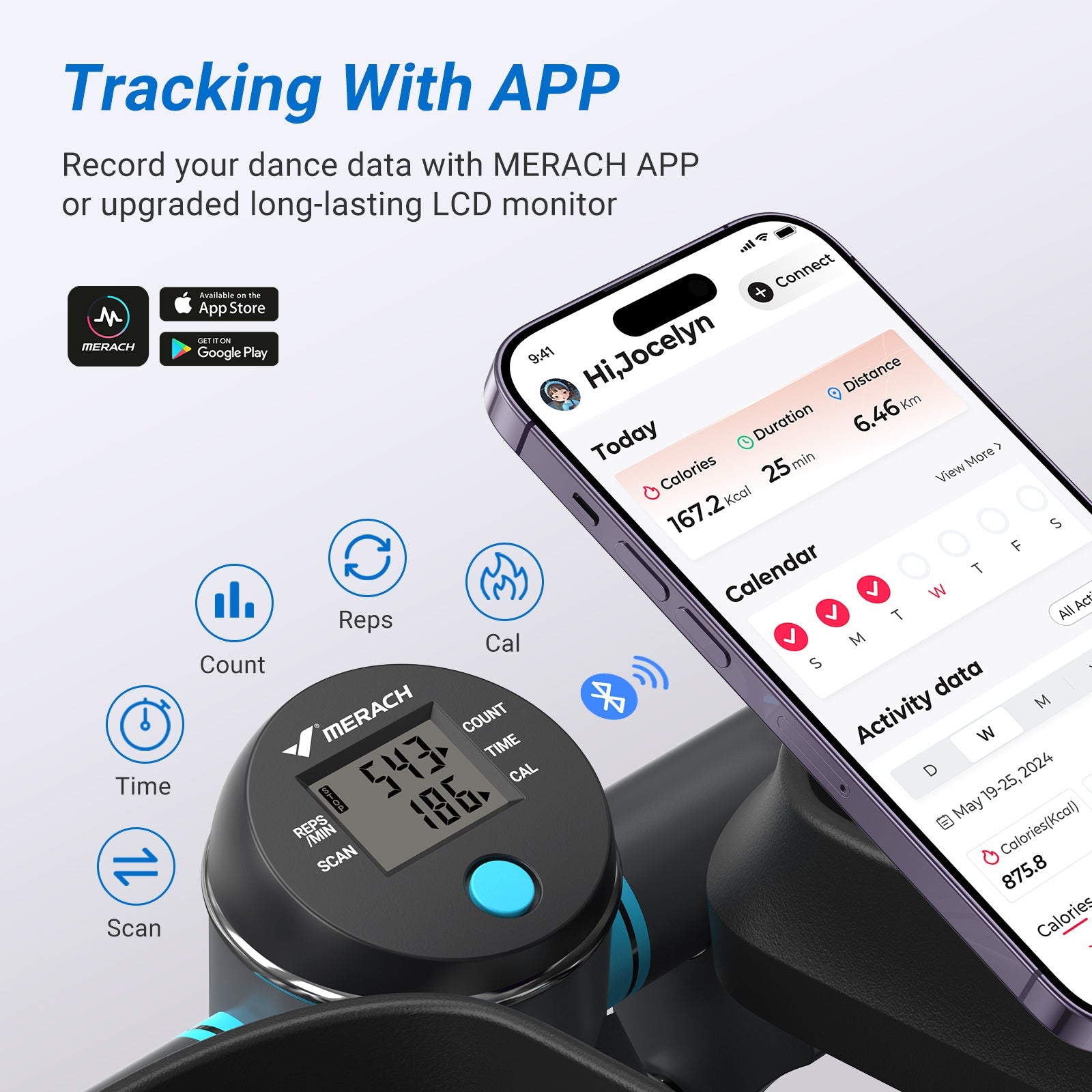 Stay on top of your progress with the MERACH APP and the upgraded electronic display. Keep your focus on the workout while your phone tracks your data seamlessly.