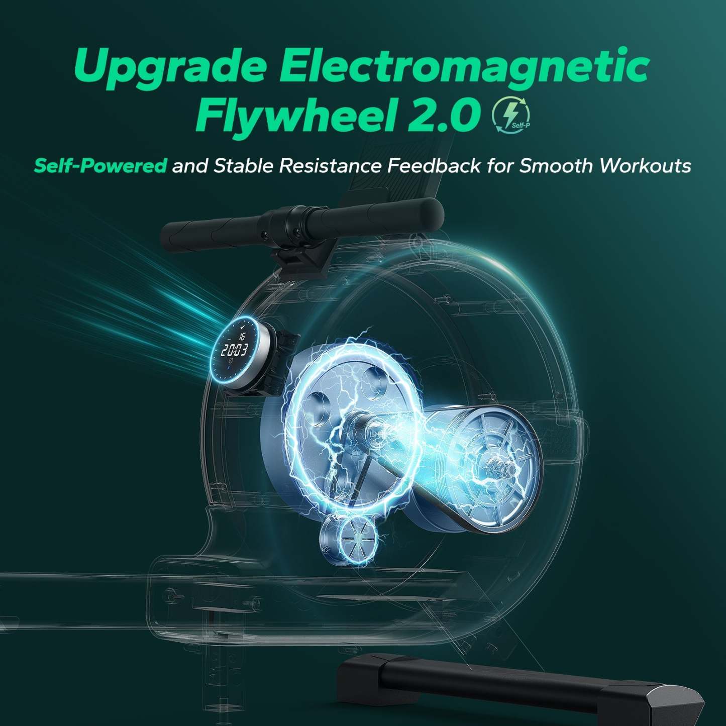 Self-powered flywheel delivers stable and ample power during workouts. Enjoy smoother and more consistent resistance feedback. Use it anywhere—garden, garage, or balcony—without the hassle of power cords.