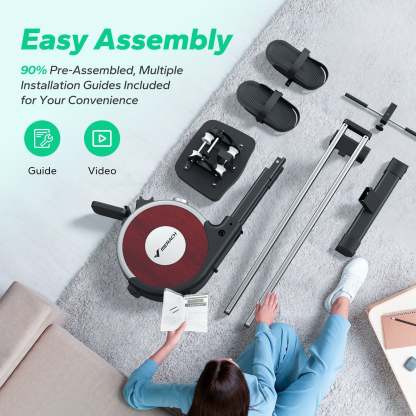 MERACH rowing machines can be assembled by most users easily in less than 30 mins. It is pre-assembled partially and can be moved around easily.